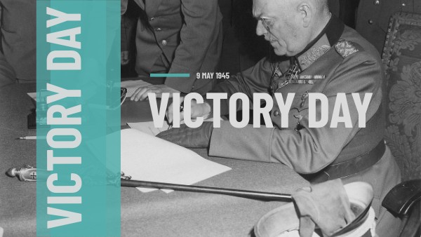 Signing in Berlin of the act of surrender of Nazi Germany to the Allied troops and consequently the end for the Soviets of the Great Patriotic War.