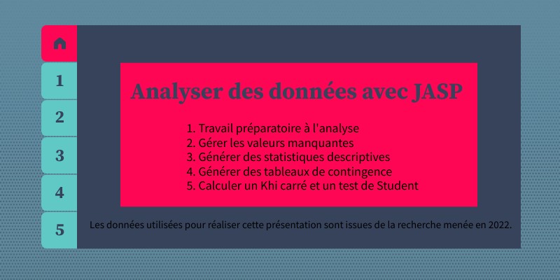 Certaines données de la base de données peuvent être codées "99" ou "999" lorsqu'elles sont absentes. Dans ce cas, il faut indiquer à JASP qu'il s'agit bien d'une donnée absente et non de la valeur "99" ou "999".