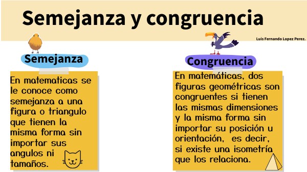 En matemáticas, dos figuras geométricas son congruentes si tienen las mismas dimensiones y la misma forma sin importar su posición u orientación, es decir, si existe una isometría que los relaciona.