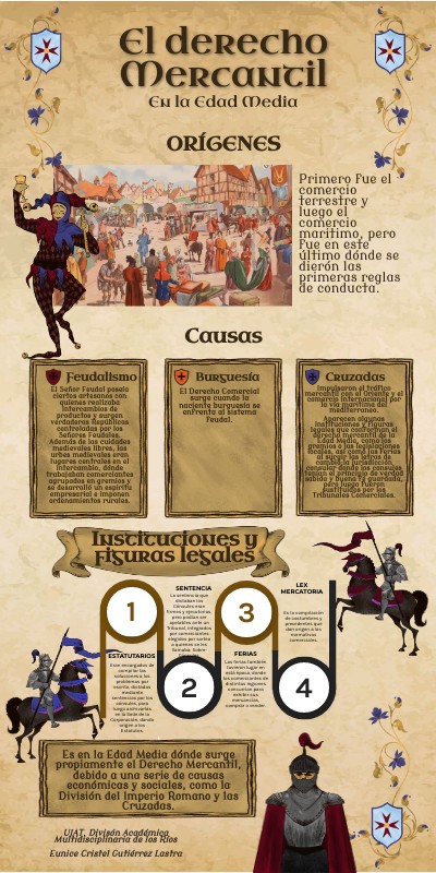 Es en la Edad Media dónde surge propiamente el Derecho Mercantil, debido a una serie de causas económicas y sociales, como la División del Imperio Romano y las Cruzadas.