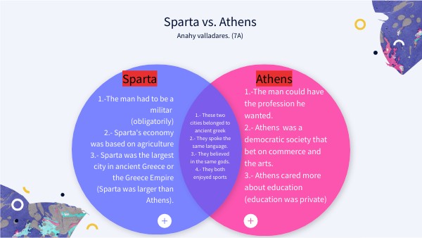 This ven diagram explains some differences between Athens and Sparta, but also shows similarities.