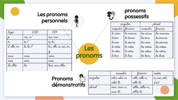 aucun, aucune, certain, certaine, chacun, chacune, l'un, l'une, l'autre, le même, la même, n'importe lequel, n'importe laquelle, nul, nulle, pas un, pas une, quelqu'un, tel, telle, tout, toute, un autre, une autre, un tel, une telle, etc.