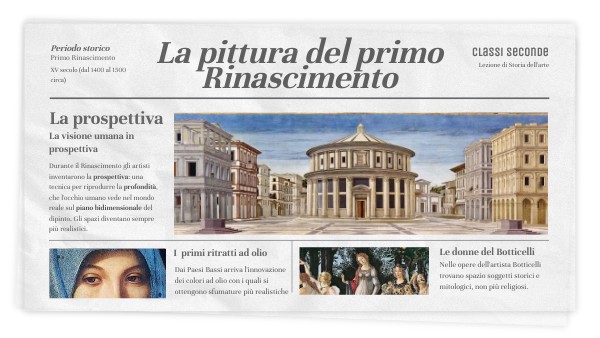 Durante il Rinascimento gli artisti inventarono la prospettiva: una tecnica per riprodurre la profondità, che l'occhio umano vede nel mondo reale sul piano bidimensionale del dipinto. Gli spazi diventano sempre più realistici.