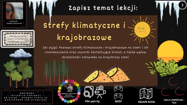 Cel zajęć: Poznasz strefy klimatyczne i krajobrazowe na ziemi i ich rozmieszczenie oraz czynniki kształtujące klimat, a także wpływ działalności człowieka na krajobrazy ziemi