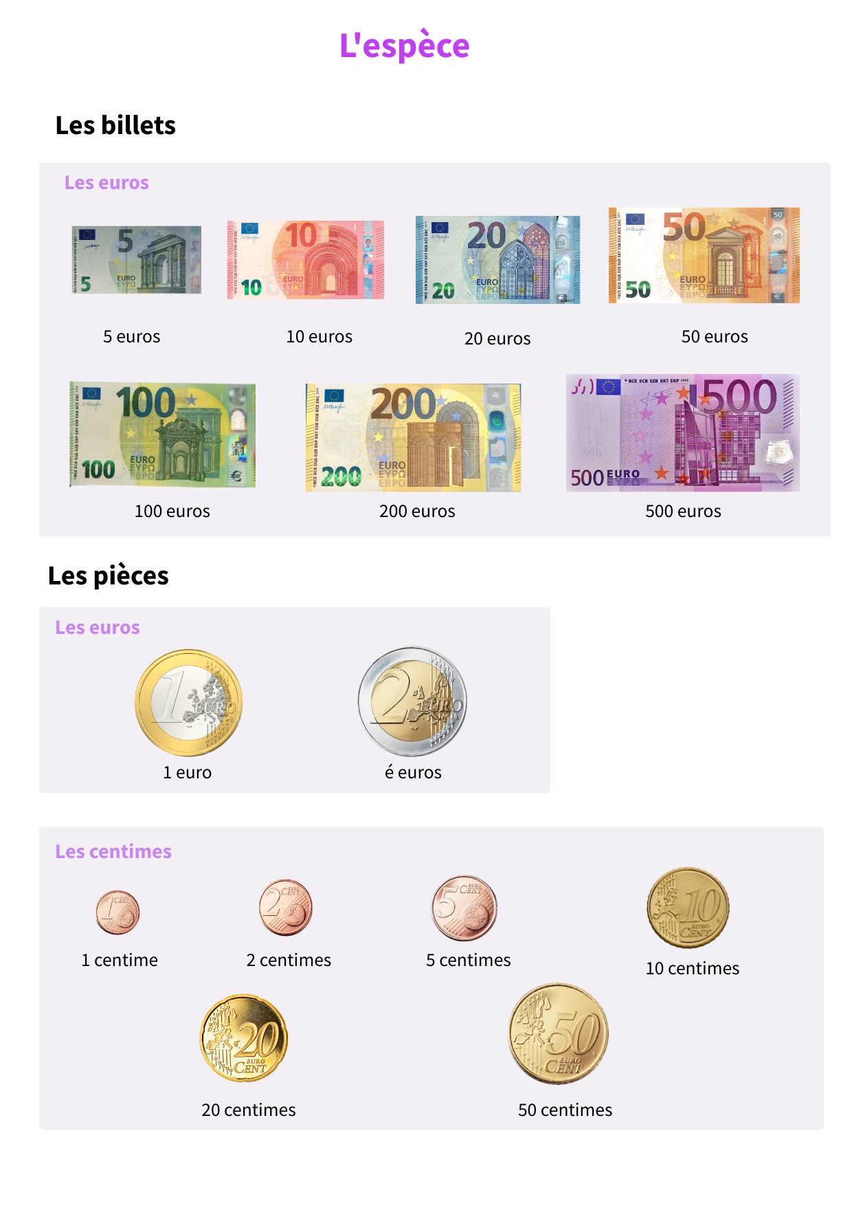 L'espèce (pièces et billets)