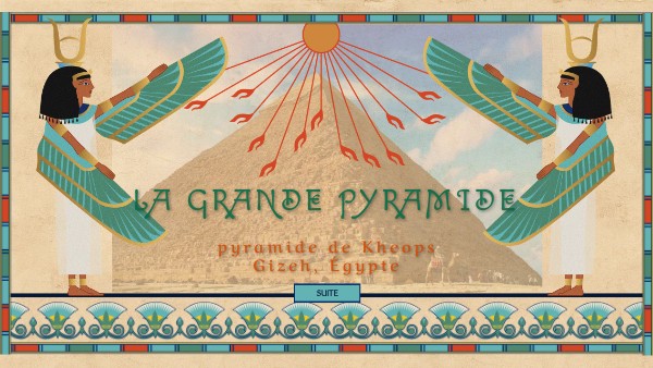 3 pyramides ont été construites à Gizeh il y a environ 4 500 ans. Elles sont les plus grandes et les mieux conservées d’Égypte (Afrique). Ce sont les tombeaux de Khéops, Khéphren et Mykérinos, 3 pharaons. Ces pyramides font partie des Sept Merveilles du monde (ce sont les seules Merveilles qui n'ont pas disparu). Une statue colossale de lion à tête de pharaon se trouve devant les pyramides de Gizeh : le Sphinx.