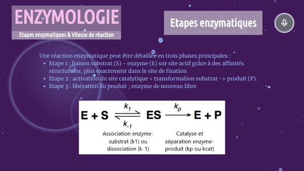 Etapes enzymatiques & Vitesse de réaction