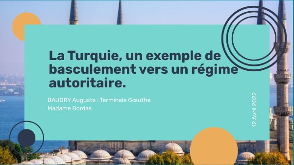 Apparu en 1923 suite à la chute de l’Empire Ottoman, la Turquie devient très vite, grâce à Mustapha Kemal, une démocratie rêvée de tous. Perçue depuis les années 20 comme une démocratie moderne alliant islam et nationalisme, la Turquie laïque dirigée par Recep Tayyip Erdoğan a peu à peu virée vers un régime despotique. Arrivé au pouvoir en 2003, Erdogan montre au monde une Turquie ouverte, qui met en place une politique de réformes démocratiques dans le domaine économique, juridique et institutionnel. Durant son premier mandat, la Turquie se montre réfractaire à toute forme de violence. Puis les avancées de la démocratie laissent place aux grandes ambitions du chef d’Etat et à sa volonté de basculer dans un régime autoritaire, mais vu comme une « démocrature ». Mais comment un pays, exemple de la démocratie libérale dans les années 20, connait-il une descente aux enfers vers un régime autoritaire ? Afin de répondre précisément possible à cette problématique, nous étudierons dans un premier temps la montée au pouvoir d’un homme dans une démocratie exemplaire, aux portes de l’expansionnisme islamique, puis nous comprendrons que le contexte géopolitique de 2013 et 2016 a permis à Reicep Tayyip Ergdoğan d’affirmer son ambition politique au ressort de nombreuses purges.