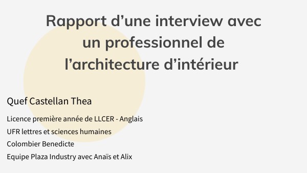 Rapport d’une interview avec un professionnel de l’architecture d’intérieur