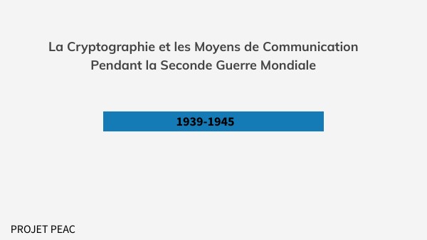 INTRODUCTION: Während dieses Vortrags werde ich über Kryptografie und Kommunikationsmittel während des Zweiten Weltkriegs sprechen. Dies ist Teil des PEAC-Projekts. Dieser Weg soll es jedem Schüler ermöglichen, sich mit verschiedenen Themen zu beschäftigen und sich kulturell zu bereichern.In meiner Zusammenfassung stehen die Themen, die ich behandeln werde. Es gibt die Enigma-Maschine, die Navajo-Indianer und Widerstandstexte. Ich würde die folgende Problematik behandeln: Welche Mittel gibt es ? Beginnend mit enigma