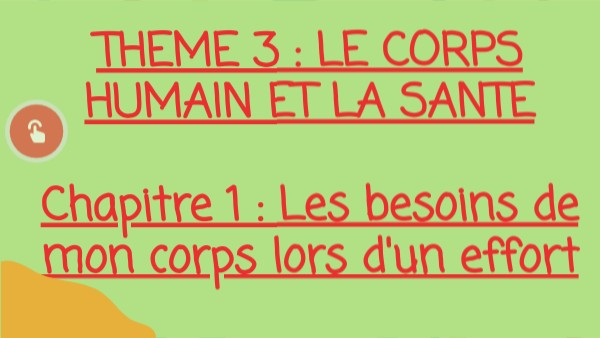 THEME 3 : LE CORPS HUMAIN ET LA SANTE Chapitre 1 : Les besoins de mon corps lors d'un effort