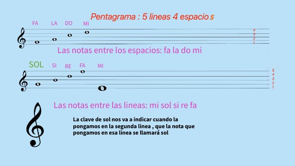 La clave de sol nos va a indicar cuando la pongamos en la segunda linea , que la nota que pongamos en esa linea se llamará sol
