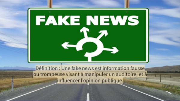 Définition : Une fake news est information fausse ou trompeuse visant à manipuler un auditoire, et à influencer l’opinion publique.