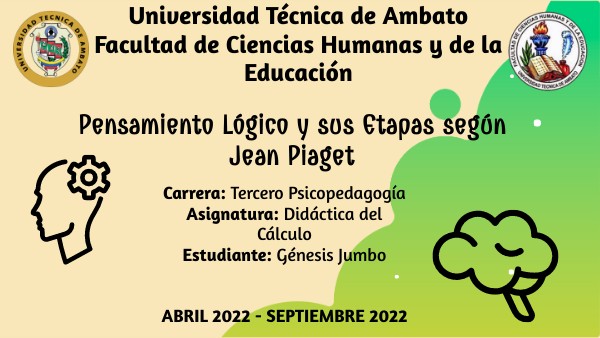 Carrera: Tercero Psicopedagogía Asignatura: Didáctica del Cálculo Estudiante: Génesis Jumbo ABRIL 2022 - SEPTIEMBRE 2022