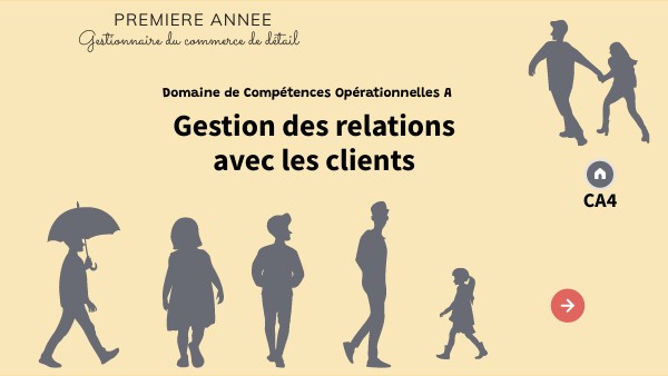 Objectifs évaluateurs a1ep1a : Ils appliquent les aspects essentiels du premier contact avec un client (C3) Champ d'apprentissage 1 (CA1) Analyser le besoin du client du commerce de détail et pésenter des solutions Objectifs évaluateurs a2ep1a - a2ep2a - a2.ep5a : Ils contrusient une atmosphère de confiance vis-à-vis du client (C3) Ils appliquent la méthodologie de l'analyse des besoins du client (C3) Ils identifient les aspects essentiels d'une expérience d'achat positive (C3)