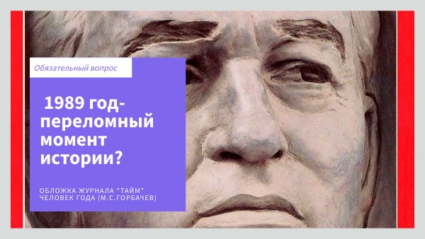 1989 год символизирует время перемен и далеко не только в СССР. Попробуем разобраться, что же случилось и как даннные события означают с одной стороны...А с другой...