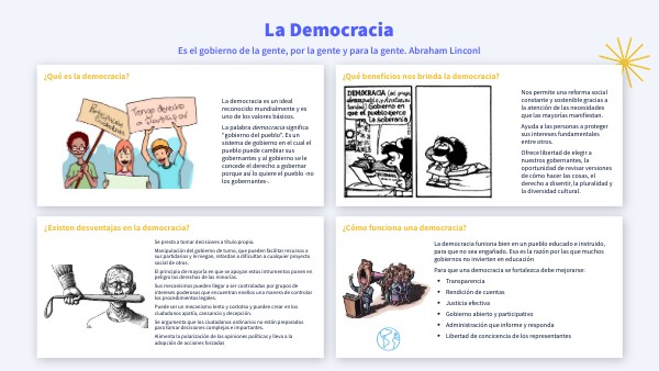 Es el gobierno de la gente, por la gente y para la gente. Abraham Linconl