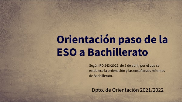 Según RD 243/2022, de 5 de abril, por el que se establece la ordenación y las enseñanzas mínimas de Bachillerato.
