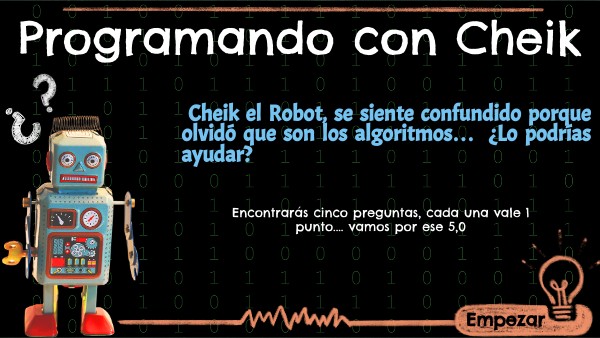 Cheik el Robot, se siente confundido porque olvidó que son los algoritmos… ¿Lo podrías ayudar?