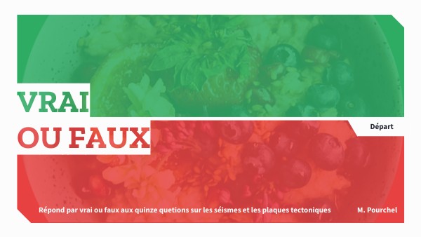 Répond par vrai ou faux aux quinze quetions sur les séismes et les plaques tectoniques M. Pourchel