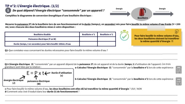 TP n°2: L'énergie électrique. (1/2)