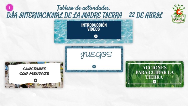 Tablero de actividades. DÍA INTERNACIONAL DE LA MADRE TIERRA 22 DE ABRIL