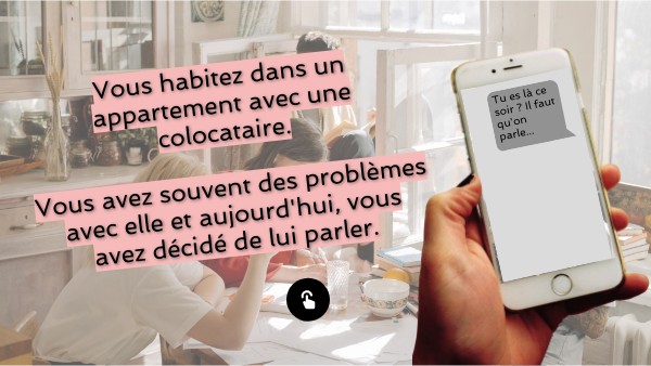 Vous habitez dans un appartement avec une colocataire. Vous avez souvent des problèmes avec elle et aujourd'hui, vous avez décidé de lui parler.
