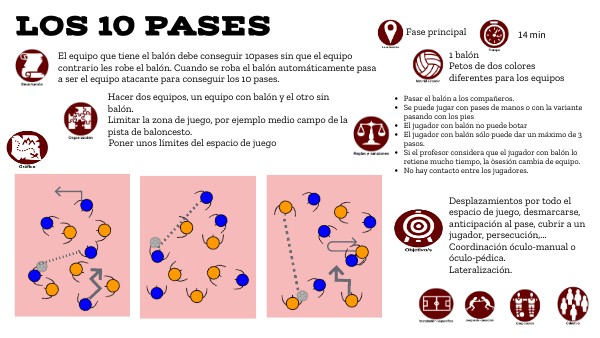 El equipo que tiene el balón debe conseguir 10pases sin que el equipo contrario les robe el balón. Cuando se roba el balón automáticamente pasa a ser el equipo atacante para conseguir los 10 pases.