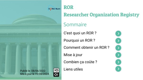 C'est quoi un ROR ?Pourquoi un ROR ?Comment obtenir un ROR ? Mise à jour Combien ça coûte ? Liens utiles