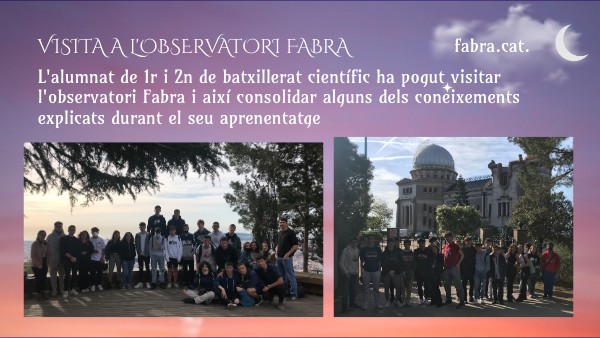 L'alumnat de 1r i 2n de batxillerat científic ha pogut visitar l'observatori Fabra i així consolidar alguns dels coneixements explicats durant el seu aprenentatge
