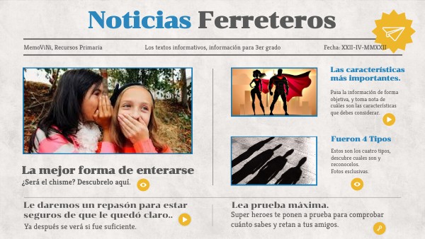 Presentación con Quizz de textos informativos para primaria. Español.