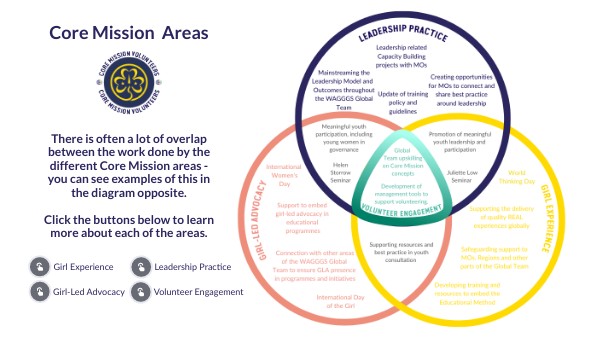 Volunteer Engagement is embedded through the Girl Experience, Girl-Led Advocacy, and Leadership Practice teams, with some specific volunteer management policies and processes worked on by a small dedicated team of volunteers.