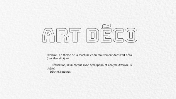 Exercice : Le thème de la machine et du mouvement dans l’art déco (mobilier et bijou) - Réalisation, d’un corpus avec description et analyse d’œuvre (6 objets) - Décrire 3 œuvres