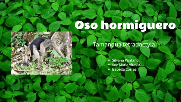 https://www.ecured.cu/Oso_hormiguero https://www.zoobarcelona.cat/es/animales/oso-hormiguero#:~:text=Se%20alimenta%20de%20hormigas%20y,espinosa%20y%20a%20la%20saliva%20pegajosa. https://es.mongabay.com/2017/04/colombia-oso-hormiguero/