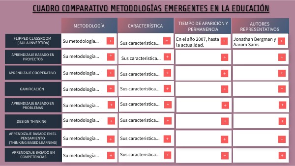 CUADRO COMPARATIVO METODOLOGÍAS EMERGENTES EN LA EDUCACIÓN