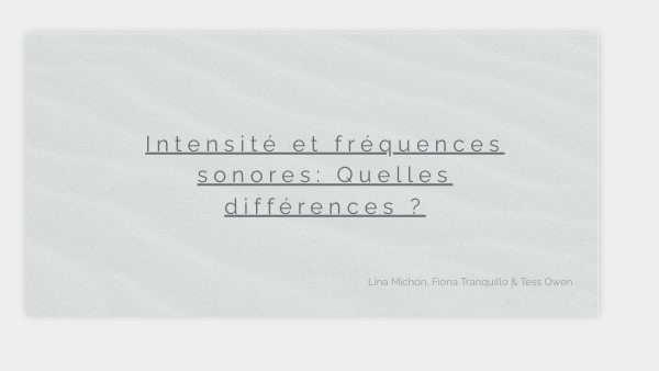 1) L'intensité sonore 2) La fréquence sonore 3) Les différences 4) Questionnaire 5) Les sources