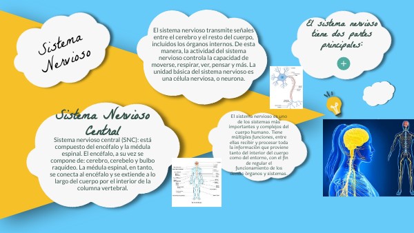 El sistema nervioso transmite señales entre el cerebro y el resto del cuerpo, incluidos los órganos internos. De esta manera, la actividad del sistema nervioso controla la capacidad de moverse, respirar, ver, pensar y más. La unidad básica del sistema nervioso es una célula nerviosa, o neurona.