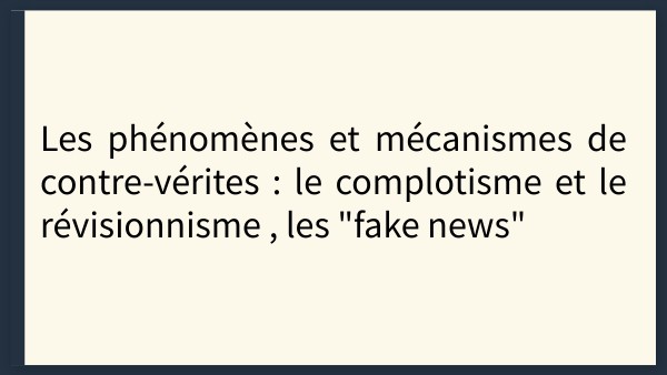 Les phénomènes et mécanismes de contre-vérites : le complotisme et le révisionnisme , les "fake news"