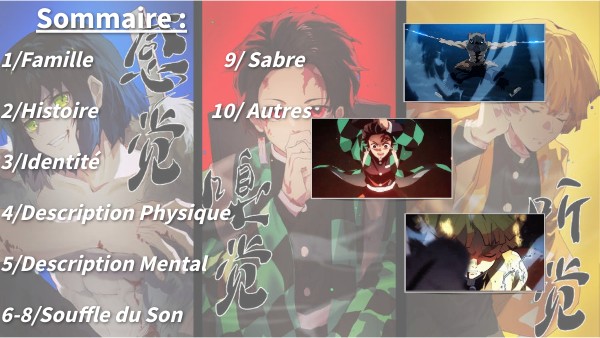 1/Famille 9/ Sabre2/Histoire 10/ Autres3/Identité4/Description Physique5/Description Mental6-8/Souffle du Son