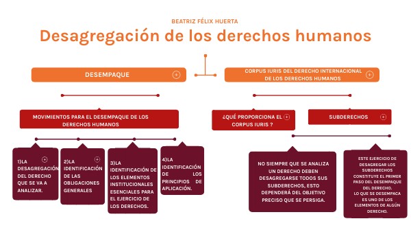 Este ejercicio de desagregar los subderechos constituye el primer paso del desempaque del derecho.Lo que se desempaca es uno de los elementos de algún derecho.