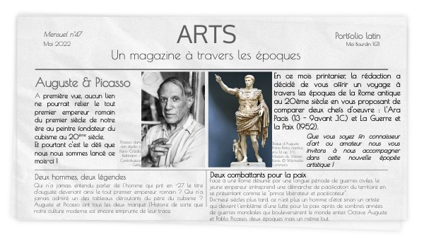 Qui n'a jamais entendu parler de l'homme qui prit en -27 le titre d'auguste devenant ainsi le tout premier empereur romain ? Qui n'a jamais admiré un des tableaux déroutants du père du cubisme ? Auguste et Picasso ont tous les deux marqué l'Histoire de sorte que notre culture moderne est encore emprunte de leur trace.