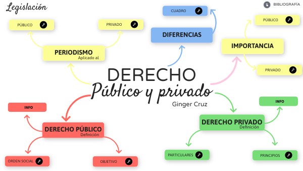 Mapa mental sobre Derecho Público y Derecho Privado (Definición, importancia y un cuadro comparativo aplicado al Periodismo).