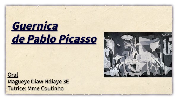 Guernica, tableau majeur de l'œuvre du célèbre peintre cubiste Pablo Picasso, a été peinte en 1937 en réaction au bombardement de la ville basque du même nom (Guernica), par l'aviation allemande et sur commande des nationalistes , dans le contexte de la guerre civile espagnole(1936-1939).