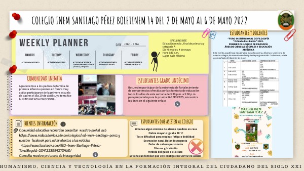 colegio inem santiago pÉrez boletinem 14 del 2 de MAYO al 6 de mayo 2022