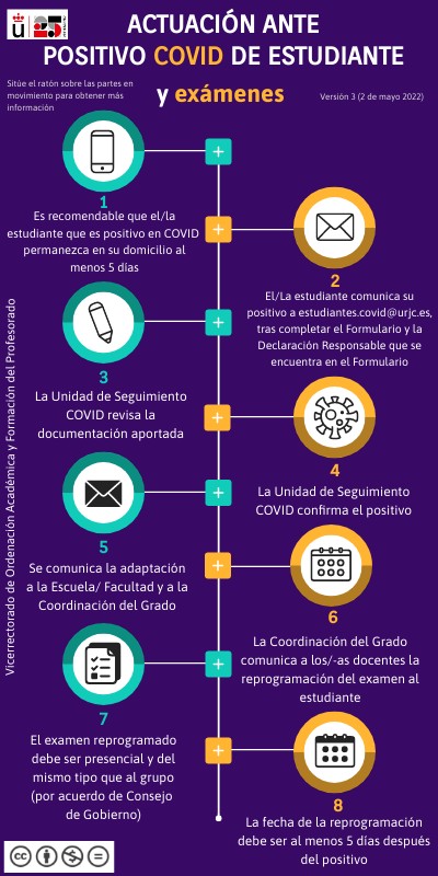El/La estudiante comunica su positivo a estudiantes.covid@urjc.es, tras completar el Formulario y la Declaración Responsable que se encuentra en el Formulario