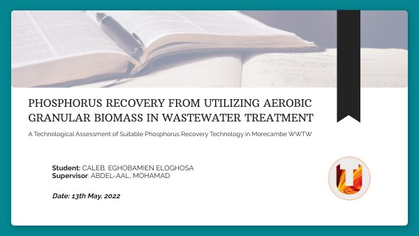 - Critically evaluate the feasibility and economic implication of phosphorus recovery in Morecambe WWTW