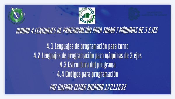 UNidad 4 Lenguajes de Programación para Torno y Máquinas de 3 Ejes