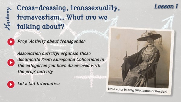 Prep' Activity about transgender Association activity: organize these documents from Europeana Collections in the categories you have discovered with the prep' activity Let's Get Interactive