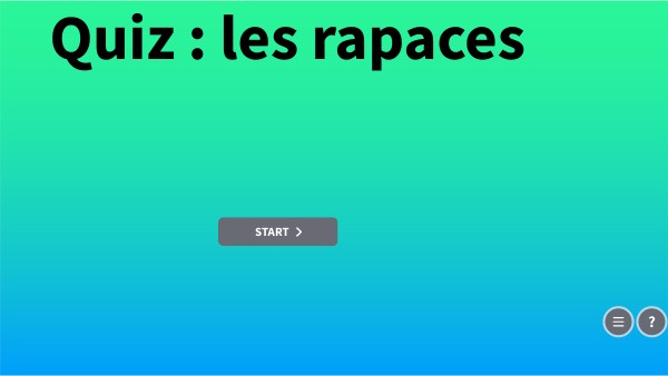 dans ce quiz ,vous allez répondre à des questions sur les rapaces pour ce fait, vous cliquerez sur le numéro de la réponce qui vous semble être la solution. Si vous avez une bonne réponse vous passerez directement à la question suivante , si vous avez une mauvaise réponse, vous irez sur une page rouge d'ou vous pourrez revenir à votre question précédente. à la fin du QCM vous avez deux possibilitées: - refaire le quiz - arrêter -regarder une video sur l'aigle royal (watch1) -ou regarder une video sur le faucon pèlerin (watch2)
