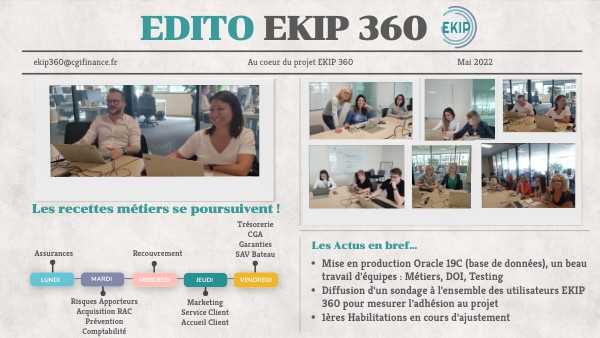 - Diffusion d'un sondage à l'ensemble des utilisateurs EKIP 360 pour mesurer l'adhésion au projet